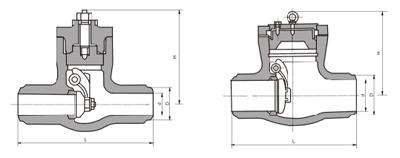 H64Y type 1500 (Lb) ~ 2500 (Lb) high temperature butt welding check valve para sa Class1500 ~ 2500Lb, operating temperatura -29 ~ 570 ℃ petrolyo, kemikal, thermal power station at iba pang kondisyon ng pipeline.